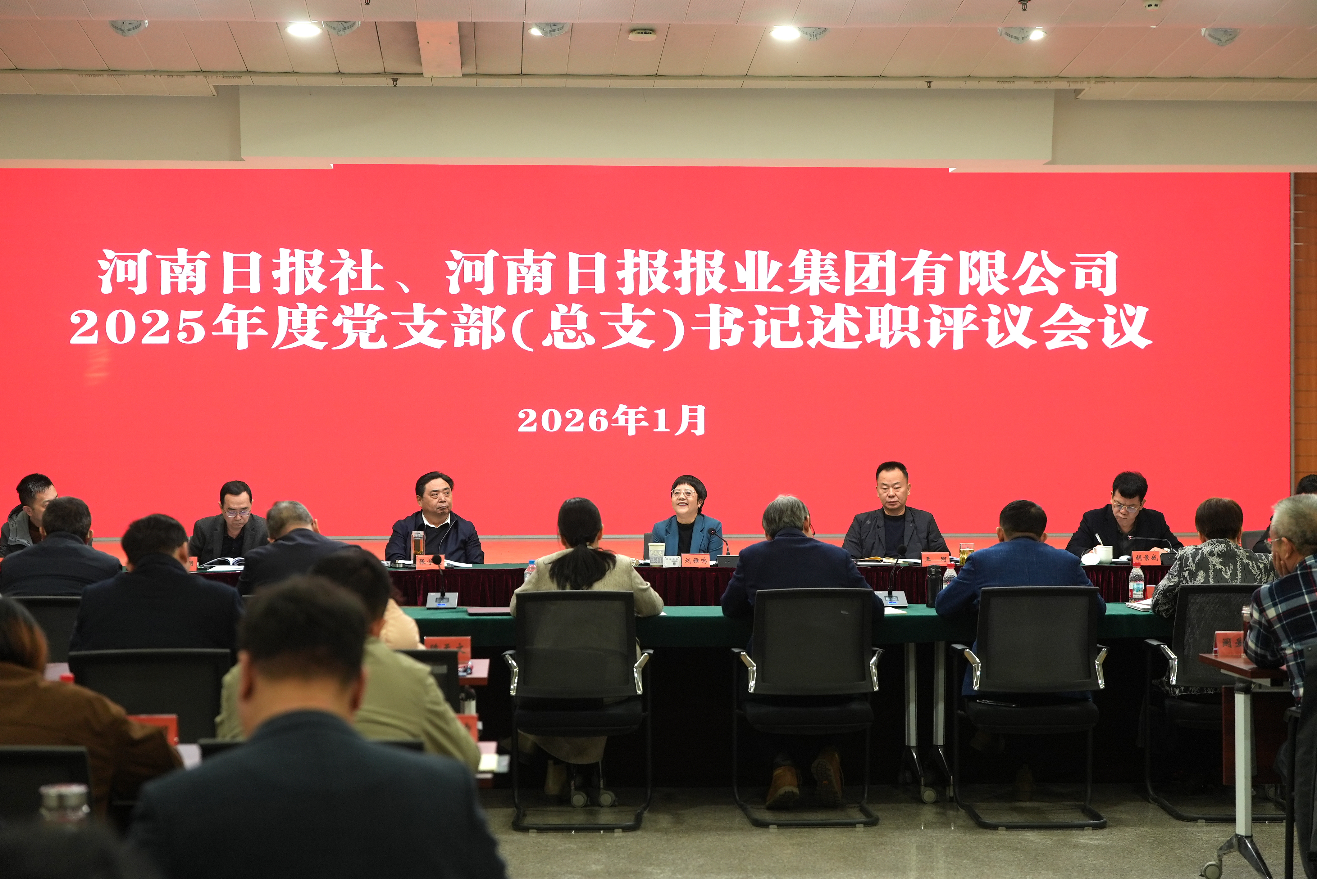 报社、集团公司召开2025年度党支部(总支)书记述职评议考核工作会议2026-01-28会议采取现场述职与书面述职相结合的方式进行,综合管理部门、河南日报、系列媒体和生产经营四个党建协作组的12位党支部(总支)书记现场述职,刘雅鸣同志逐一点评,肯定